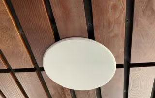 Finally, we installed outdoor surface-mount speakers at the west and east roof decks. Leasing staff control audio systems through a simple Sonos app. When those devices aren’t handy, wall-mounted LCD keypads offer basic controls.